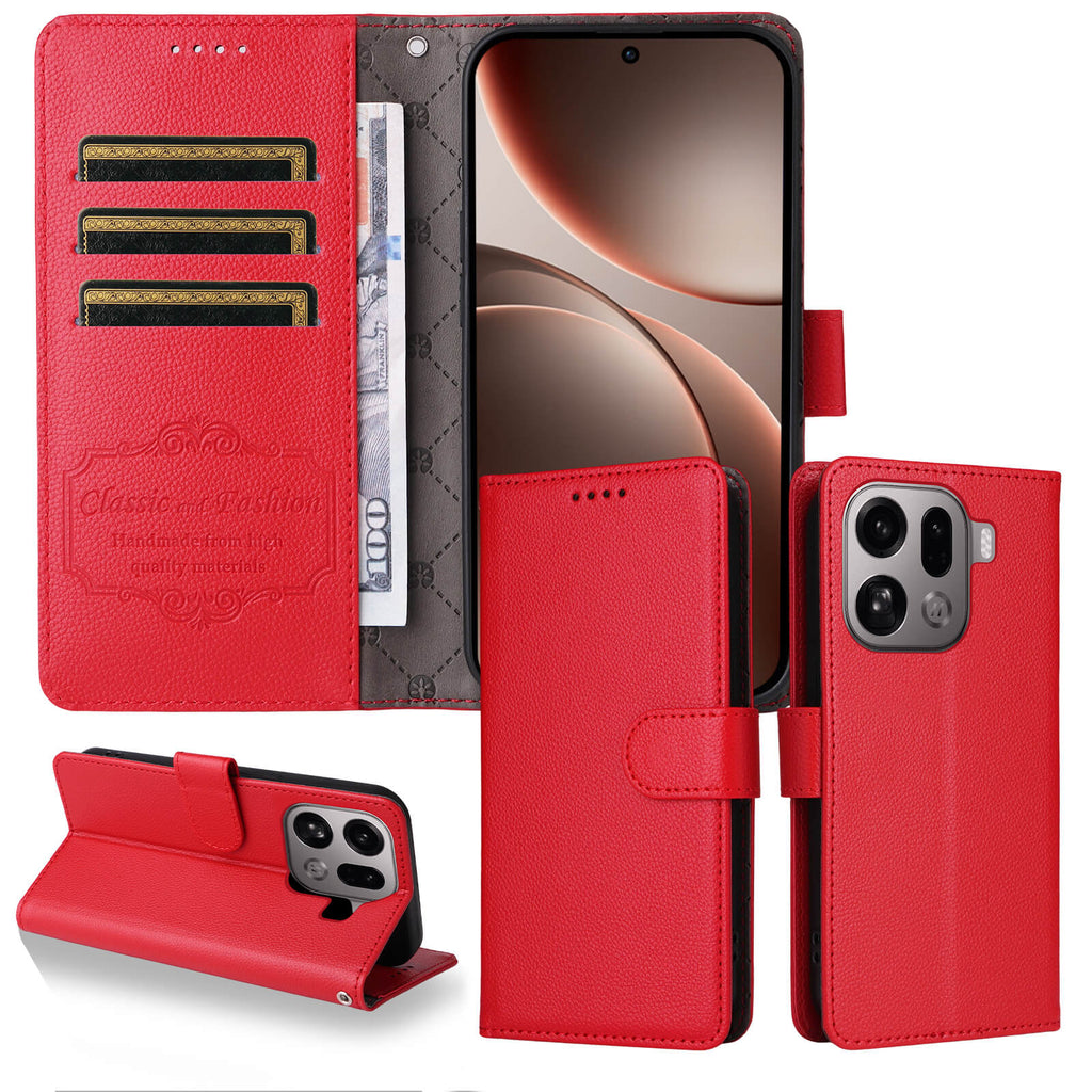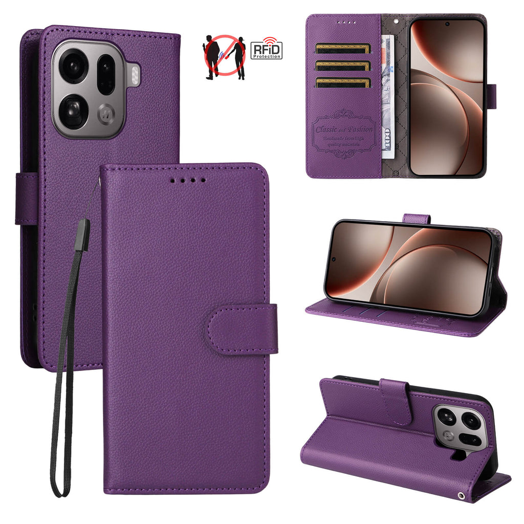 Textured Leather-Style Wallet Case β RFID Protection & Card Holder for OPPO Find X9 Pro
